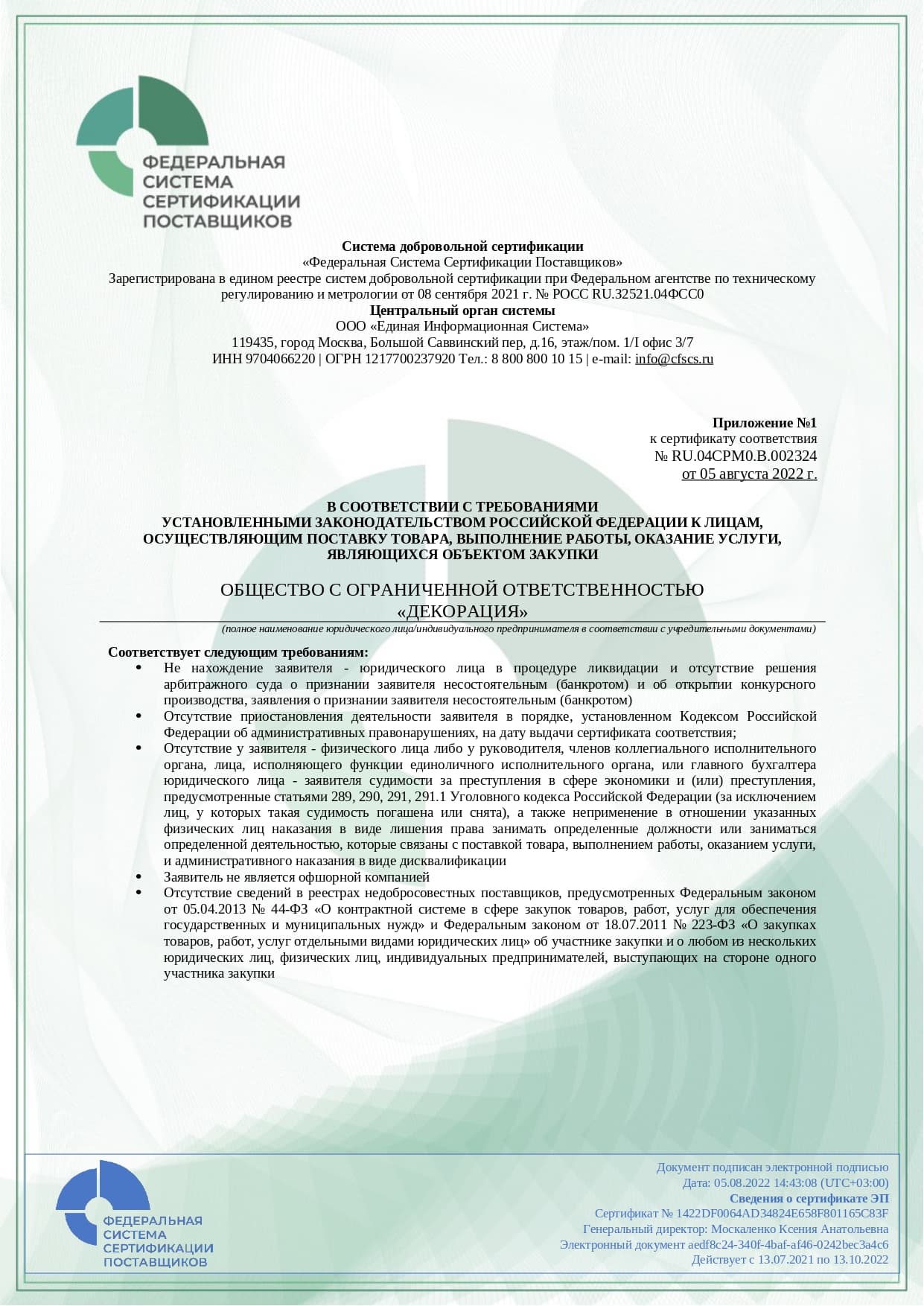 Заключение договора06